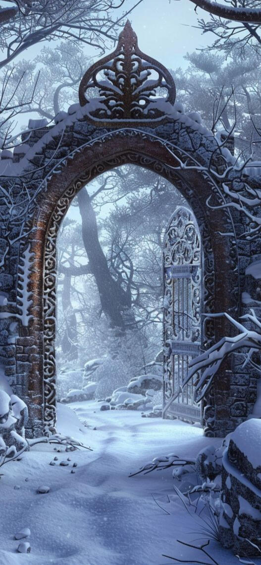 As snow drifted through the broken arches like forgotten prayers.
